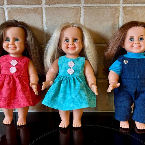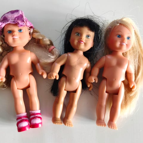 Selger en samling med fire dukker i ulike størrelser.