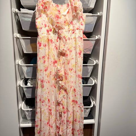 Hvit kjole med blonder som har blomster på seg. Kjempefin ikke brukt kjole.