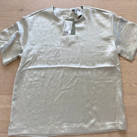 Flatterende svart topp fra H&M med lekre gulldetaljer. Aldri brukt, merkelapp fortsatt på. Perfekt til fest eller en pyntet kveld ute.