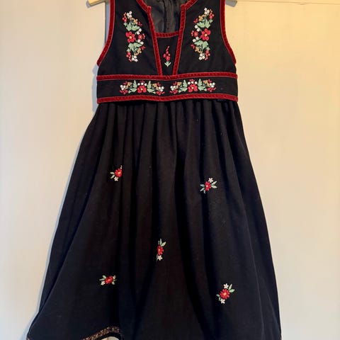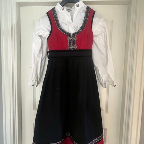 Jentebunad - svært lite brukt - nydelig, ekte hallingdrakt fra Husfliden håndbrodert tidlig 80-tall. Modellen og broderiene er Hemsedal/Gol. Dette er den originale barnebunaden for Øvre Hallingdal, sydd for å vare i generasjoner.