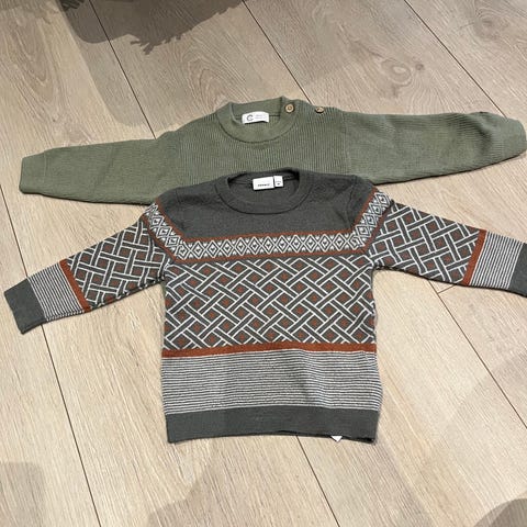 To helt nye ullgenser fra Cubus, med merkelapp på. I blå og mørkegrå.