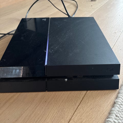 Jeg selger min trofaste PS4 etter mange år i bruk. Den fungerer fortsatt akkurat som den skal, men den lager litt støy. Alt av kabler følger med (HDMI, power kabel).