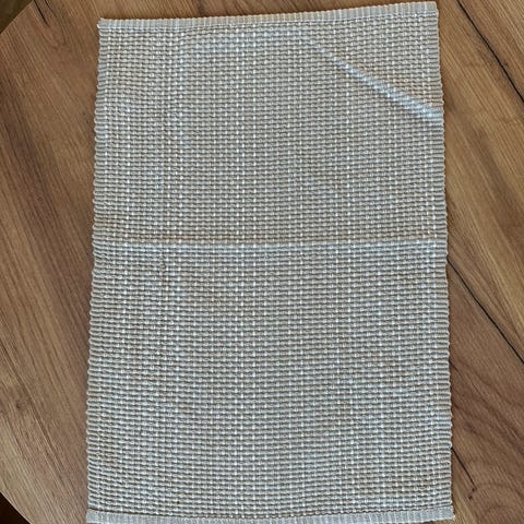 Håndkle er et annet stoff enn dukene og er litt mer offwhite i fargen.