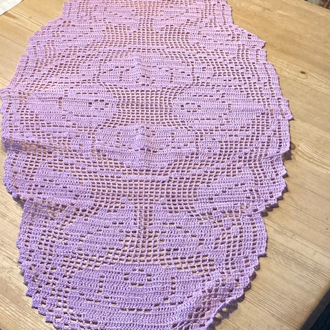 Liten duk, løper og pyntehåndkle i hvitt med blå broderier. Helt og pent og ingen flekker som jeg kan se.