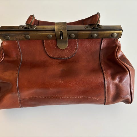 Stillig vintage / retro skulder/ håndveske i lær/skinn med spesielle detaljer . Hbo 679 kr