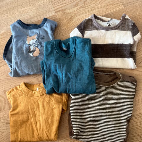 Mykt og varmt: 2 body og en hjemmestrikket genser.