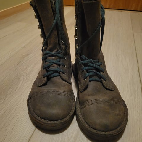 Skoene som er for salg har blitt godt brukt og høyt elsket. De har slitasje under på sålen og må derfor repareres. Jeg har forsøkt å reparere dette selv ved å påføre lim og masse for å tetne, uten hell. Det er ellers et hull øverst på den ene skoen, grunnet slitasje. Det anbefales å levere de inn til en kyndig person for formålet. Jeg har ellers gummi såler som kan brukes til dette, samt lim, om så ønsket at man forsøker seg på å sette på ny såle under. Har valgt å overlevere skoene til nye eiere da jeg har sikret meg et ekstra par. (Har tatt av hektene bak på hælen, av estetiske grunner). De har jeg via separat annonse (tynn sort gummi såle). Denne sko typen er ikke for salg lengre/utgått. Be Lenka Icon. Helårsko; kan brukes hele året rundt. Nye lisser ble satt på i år.