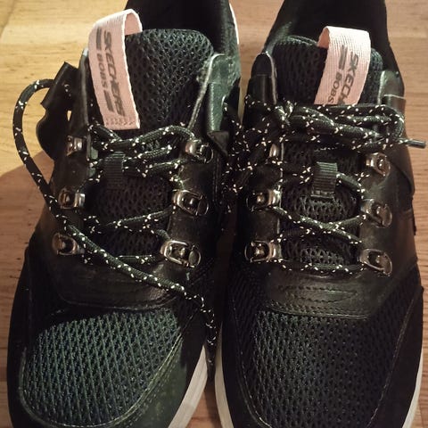 Kunn brukt et par ganger, like fine. Skechers er store i størrelsen og disse ble for store for meg. Bruker vanligvis str 41.