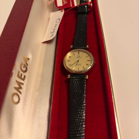 Omega De Ville gull klokke i Quartz. Testet og skiftet batteri hos Bjerke Urmaker i juni.