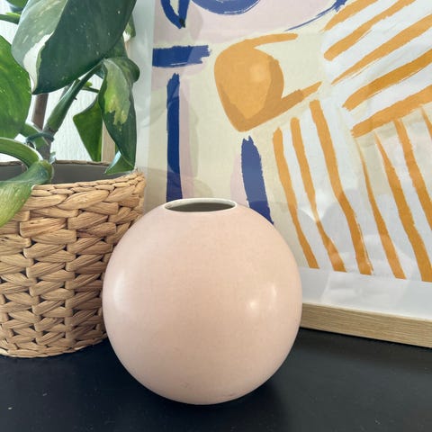 Princess Goldie Vase Sett i rosa keramikk består av to vaser, henholdsvis 27 cm og 17 cm høye. Vasen har en elegant, rund form og en delikat rosa farge som passer godt til både moderne og klassiske interiørstiler. Perfekt for å dekorere stuen eller som en gave. Selges for 150kr