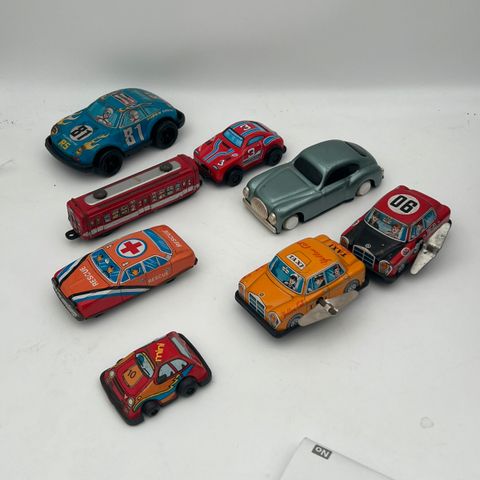 Gamle retro vintage Tin-plate biler i varierende stand. Jeep Police patrol Jeep, lengde 21 cm., made in Japan, Kr. 900,-. Ambulance van, lengde 19 cm., forbilde VW Transporter eller Mitsubishi eller noe slikt? Ikke funnet noe produsentmerke. Med mangler og skader. Kr. 150,-. London bus, dobbeldekker, lengde 27 cm., made in China, kr. 190. Datsun / Nissan 260Z police car, lengde 18 cm., politibil, produsent JS, made in Taiwan, kr. 300,-. ALLE BILENE SAMLET KR. 875,-. Se bilder for tilstand. Kan sendes med fiks ferdig, eller norgespakke 135,- på kjøpers risiko. Se mine andre annonser - klikk på KIJA.