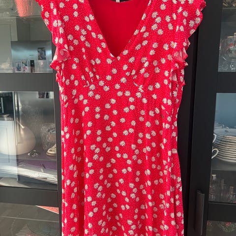 Veldig søt kjole i rødt med hvite prikker.
