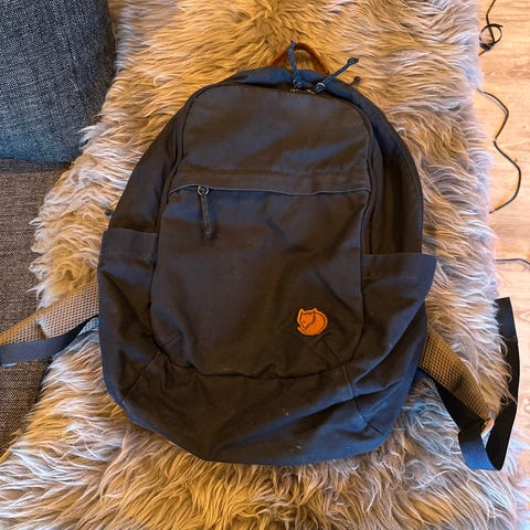 En godt brukt fjällräven sekk i sennepsgul farge. 16" laptop varianten.