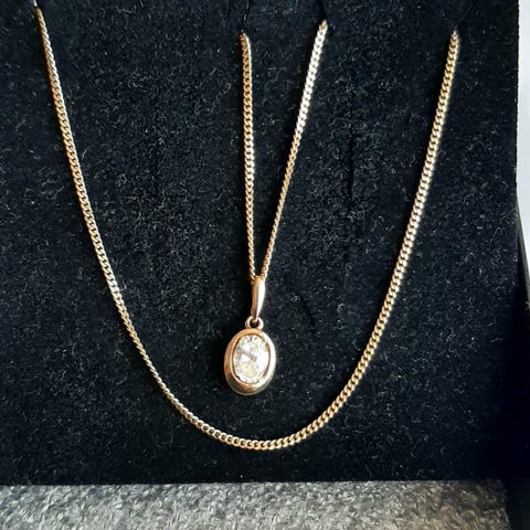 Nydelig halskjede med et lite søt anheng. Ingen stempler eller navn.