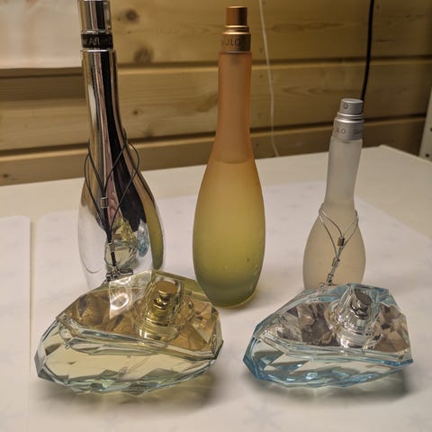 «Glow by JLO» Jennifer Lopez Glow. selges. Det er bare litt parfyme igjen i flasken. Eau de toilette. MADE IN FRANCE. Størrelsen på bunnen av flasken viser 30 ml. Flasken er fint pyntet med sølvtråd, og med bokstavene JLO i glitrende steiner. Se bilder.