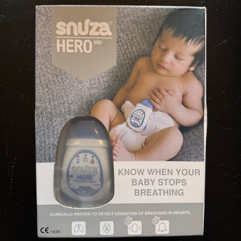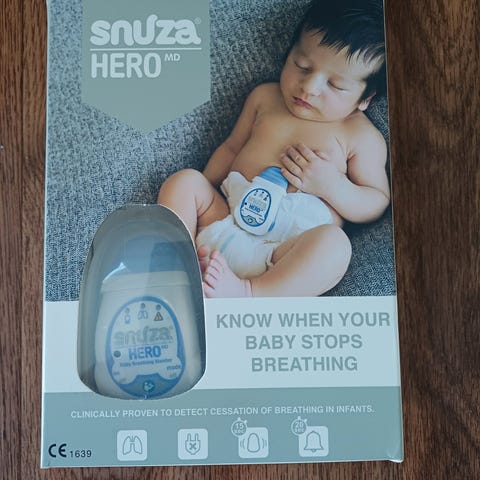 Selger en helt ny og uåpnet Snuza Hero pustemonitor. Festes enkelt på bleien og varsler dersom barnet slutter å puste eller puster uregelmessig – gir ekstra trygghet under søvn.
