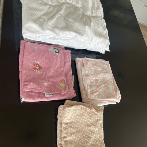 Dyne og sengetøy i størrelse 65x80 selges. Pent brukt, ingen flekker.