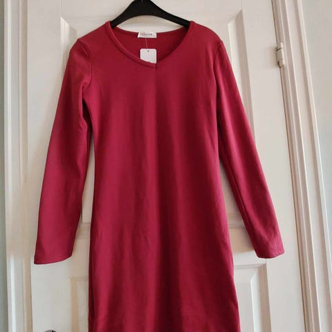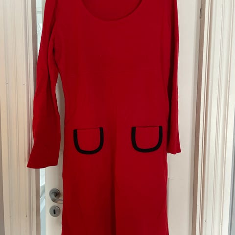 Deilig høstkjole i myk sweatshirt-kvalitet fra det britiske kvalitetsmerket Boden (merkelapp er klippet bort). Nydelig rød farge. God passform. Kjolen er merket L, men er nok nærmere en M. Pent og lite brukt.