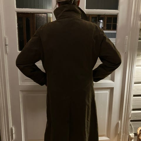 Klassisk og kul trenchcoat «Elsa Mac coat» fra Holzweiler i large, men oversized så passer også XL. Stoffet er i bomull og nylon og den tåler litt duskregn og vind. Holzweiler beskriver den som en frakk med «tekniske detaljer». Den er pent brukt ca 4 ganger. Romslig og A-formet så holder langt utover høsten selv om frakken ikke er foret.