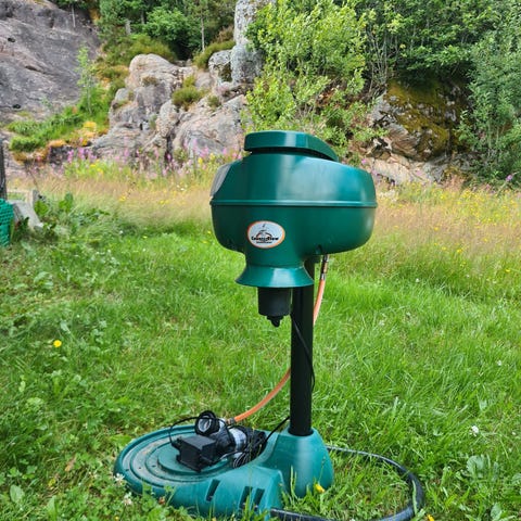 Mosquito Magnet Myggfelle (Helt ny i eske) gassdrevet i grønn farge. Denne myggfellen bruker propan for å tiltrekke og fange mygg, noe som gjør den effektiv for utendørs bruk. Den er designet for å redusere myggbestanden i hagen eller andre utendørsområder.