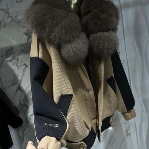 Flott pelsjakka fra & Other Stories! Myk, god og varm, med 70% ekte ull ("saueskinnspels"), to lommer + innerlomme, fór i 50% viscose og mulighet for knapping helt opp eller å ha "jakkeslag". Str. M, men litt oversized, måler ca 50cm skulderbredde, 60cm fra armhule til armhule og lengden er 75cm.