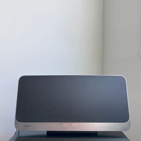 Spiller radio, CD-plater og kan kobles til andre enheter.