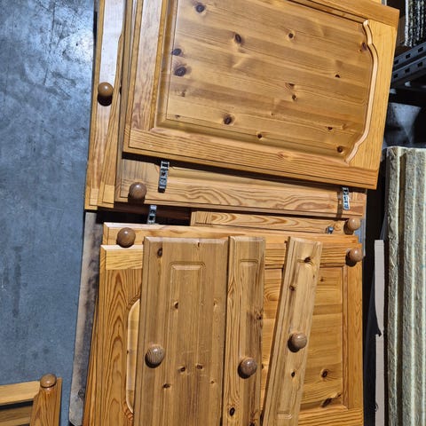 Selger litt diverse skapdører av et Huseby Rosmarin kjøkken, da vi fikk litt til overs her.