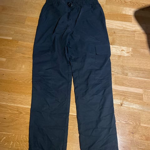 Behagelige, kule og baggy bukser fra Gina Tricot. Buksene har baklommer og to lommer øverst på lårene. Fargen er svart og den er lagd i organist bomull (organic cotton).