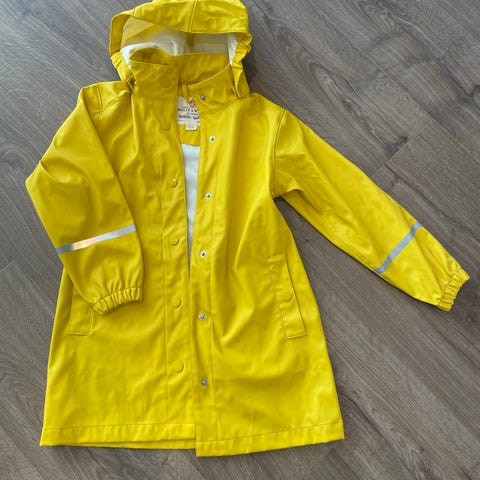 Holly & whyte, str 122. Veldig gul lang regnjakke :)