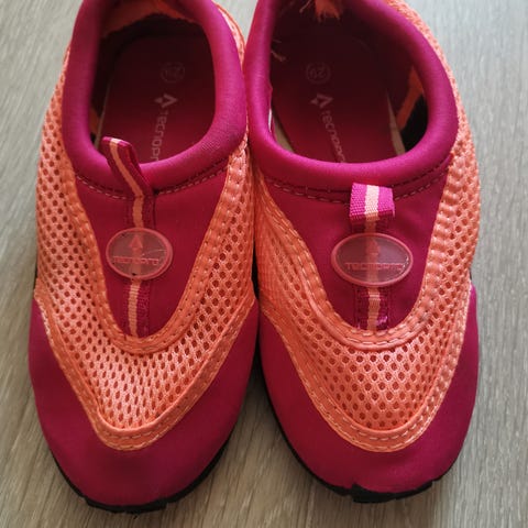 Sønnen min hadde de på i max 5 min i sommer. (Uti vann og rett opp igjen). Likte ikke å bruke badesko, derfor selges de😁