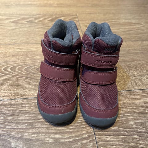 Gode og robuste fjell og tursko, med goretex som holder barnet tørt en god stund, tåler å imprigneres litt ekstra. Hele og fine, men noen bruksmerker som man ser på bildene, de er vasket lett over. Gode og varme med støtte for ankelen, masse bruk igjen! 👌🏻