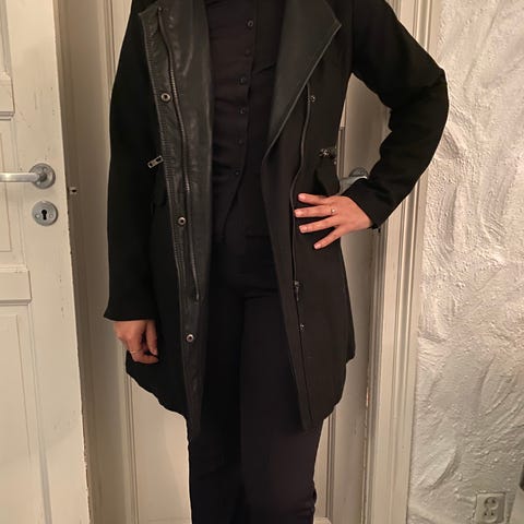 Nydelig rustrød/dempet rød/rødoransje lang jakke/kåpe fra Zavanna. (vanskelig å få frem helt riktig farge på bildene)Str, 40. Selges da den dessverre ikke passer lengre. Passer både til hverdag og fest. Imitert semsket skinn.