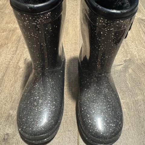Støvler for barn i størrelse 31, designet for jenter. Støvlene har et mønster og er laget for å gi komfort og beskyttelse i våte forhold. Egnet for hverdagsbruk og utendørsaktiviteter.