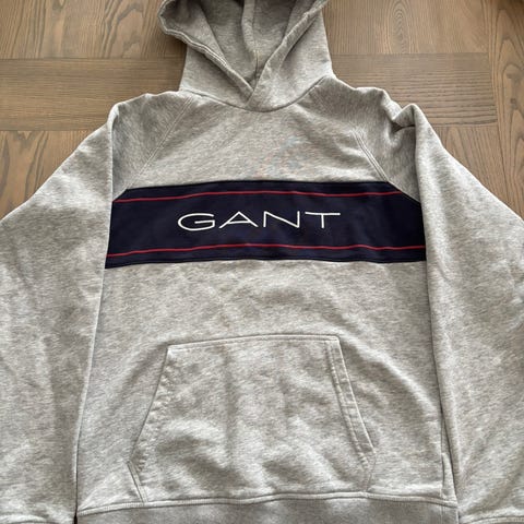 GANT hettegenser i størrelse S for gutt/menn. Fargen er blå, og genseren har et klassisk design med merkevarelogo på forsiden. Laget av behagelig materiale, egnet for hverdagsbruk.