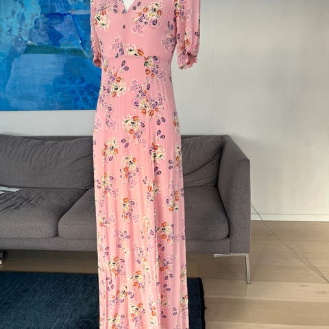 Blomstermønstret penkjole fra ByTimo i str S. Kun brukt et par ganger. Har en liten slitasje fortil i utringingen (se bilde) som knapt synes, fremstår ellers i veldig god stand. Nypris var 2599 kr.