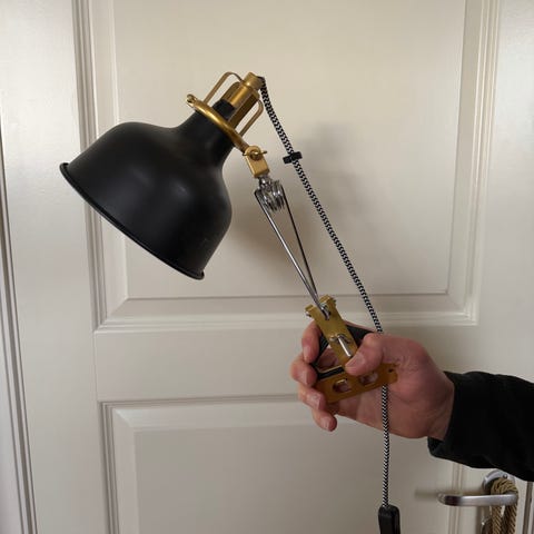 IKEA Skurup vegglampe i svart farge. Lampen har en justerbar arm og er laget av metall. Den er egnet for bruk med GU10-pærer, og gir et fokusert lys, ideelt for lesing eller belysning av spesifikke områder. Enkel å montere på veggen.