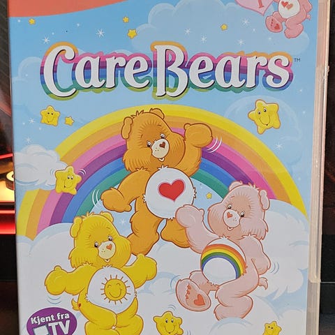 Care Bears DVD med rosa omslag. Inneholder episoder av den populære serien med Care Bears. Passer for alle aldre. DVD-format.