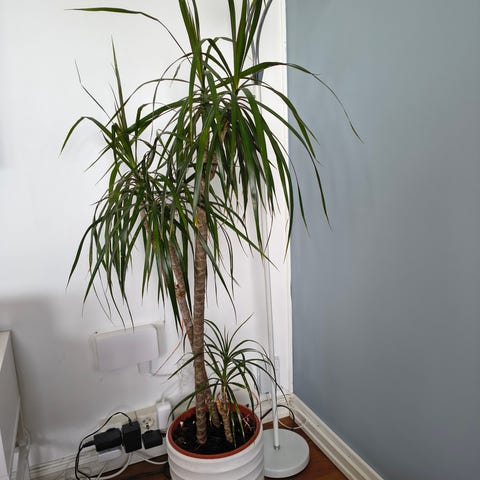 Yuccapalme i krukke av plast (40 cm i diameter på det bredeste). Planten er ca 190 cm høy inkludert krukken. Bra lag med leirkuler i bunnen av krukken. Må hentes av kjøper, men kan fraktes ned til bil. Andre etasje med heis.