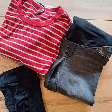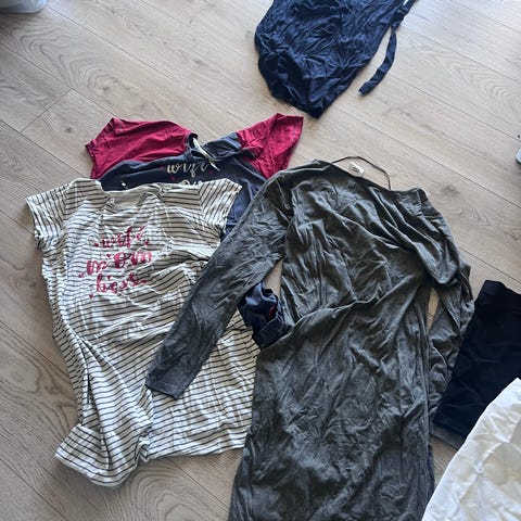 Selger en pakke med pent brukte gravidklær som passer str M.