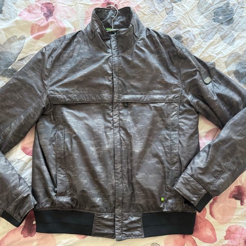 Behagelig jakke fra Fat Moose i grønn. I god stand, men et lite hull ved glidelås, se bilder. Hullet er lite synlig. Kan hentes eller sendes.