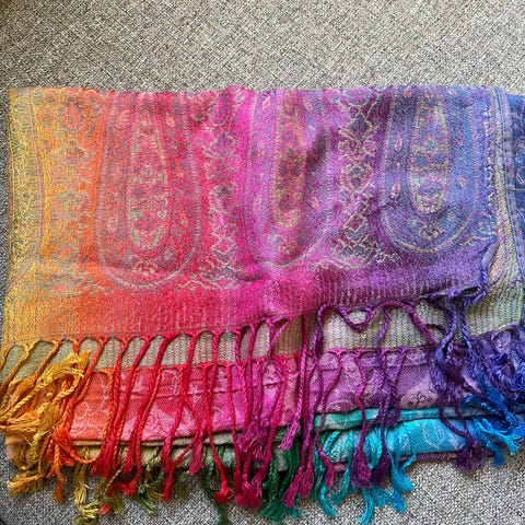 Flerfarget rainbow skjerf, sjal, turban, eller hijab 🧕✨ - myk som pashmina