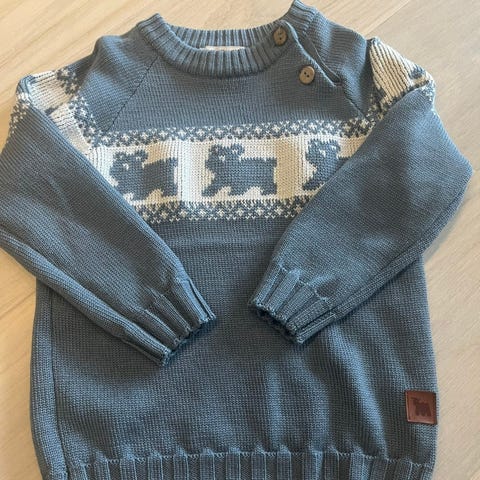 Hjemmesydde gensere i str 98, sydd i mykt isolistoff - joggebuksestoff med pusete bakside.