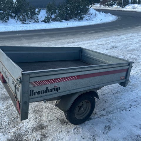Hei og grei tilhenger 2006 mod med nyere dekk og plan alu oppbevarinkasse.Trekk og lås følger med. Kasse mål ca 205x142x35.