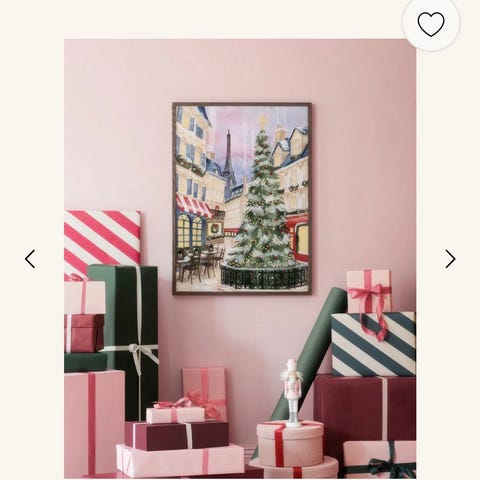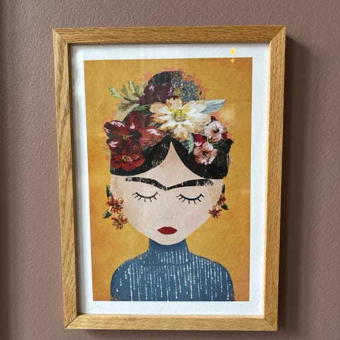 Kunstplakat med illustrasjon av bygninger i ulike farger. Plakaten er trykket på papir og har et variert fargevalg med røde, blå og beige toner. Egnet for innredning av hjem eller kontor.