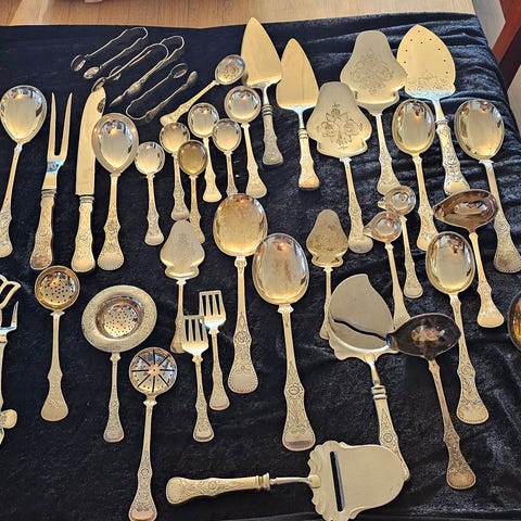 Flat Rose sølvplett. 12 gafler og 6 skjeer