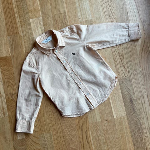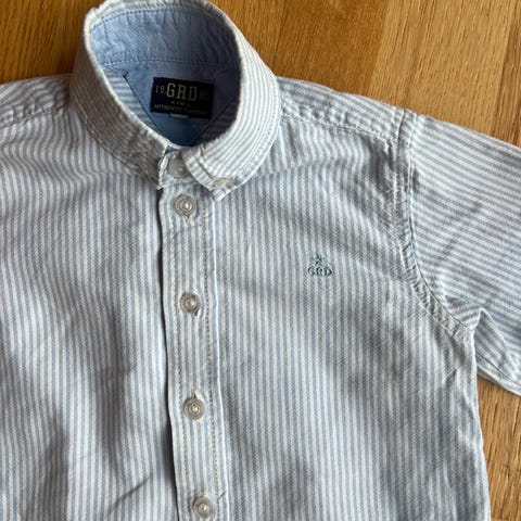 Søt hvit og lys blå stripete skjorte til gutt. Pent brukt.