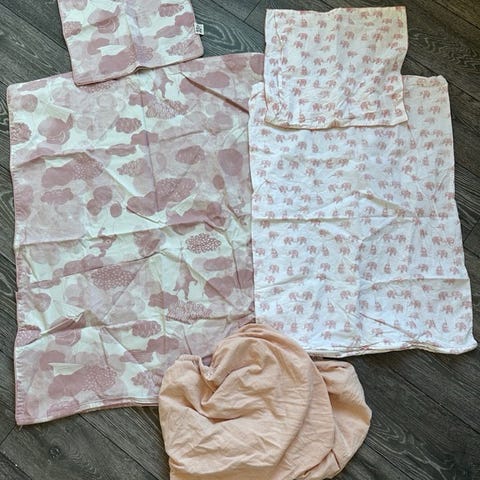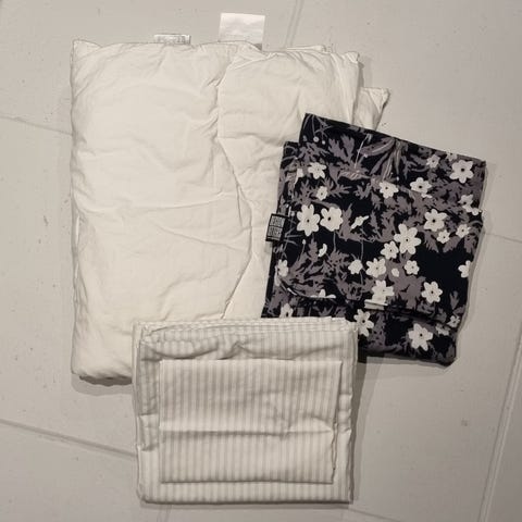 - Tre fine sengesett i blå, blekgrønn og sennepsgul fra cozy by dozy, str. 65x80 cm.