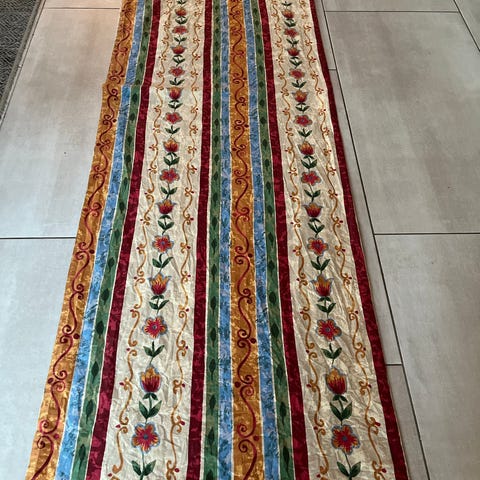 Blomstrete stoffmetervare med ulike mønstre og farger. Stoffet har vevd blomster- og bladmotiv i nyanser av beige, gull, brun og andre varme toner. Egnet til sømprosjekter som gardiner, duker, putetrekk eller andre interiørprosjekter der man ønsker et dekorativt tekstil med mønster..Selger pga flytting og plassmangel. Pris står på bildene .Kan sende ved at kjøper dekker frakt