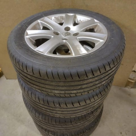 Originale Mitsubishi kvalitetsfelger uten saltskader, irr eller lakkflass. Ingen slemme kantskrap. Sommerdekk 215/55-17" følger med, balansert i år og ikke brukt etterpå. Mønsterdybde to dekk ca. 5 mm og to har ca. 2,5 mm.. Tåler en EU-kontroll som de er, men kan med fordel byttes til nye. Finnes vinterdekk tilgjengelig her i samme dimensjon.