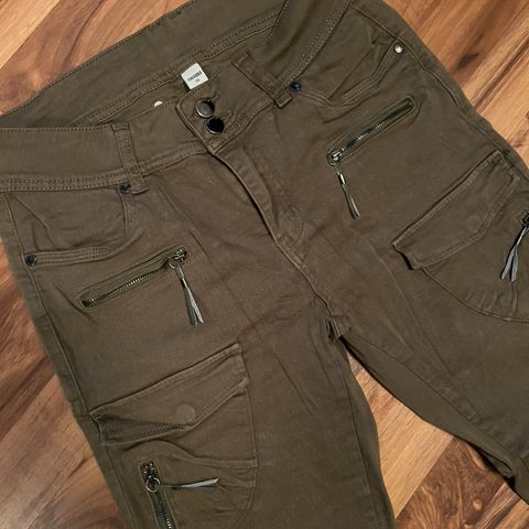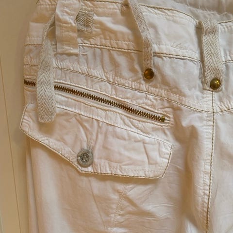 Flott lin skjørt med tøffe detaljer i str 36 fra merket nü.